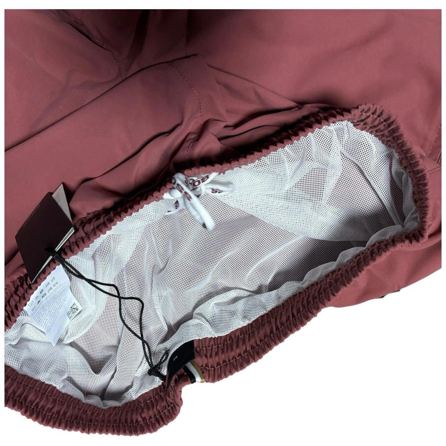 The product is a pair of navy blue Hugo Boss swim shorts in size XS. Made from 100% polyester, these swim shorts feature an elastic waist, quick-dry technology, pockets, and a drawstring for a secure fit. The Hugo Boss model is designed for men looking for high-quality swimwear that combines style and functionality. Crafted in Vietnam, these swim shorts offer a luxurious addition to any man's beach or poolside wardrobe.